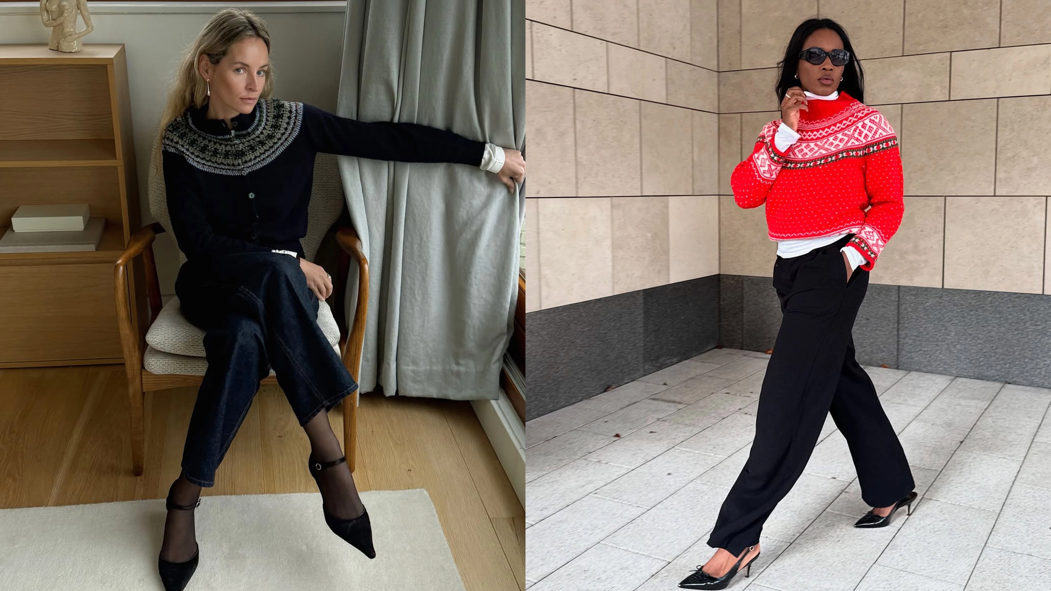 Modern versions nod to that heritage while dialing up the fun factor. Designers and labels are breaking the rules with oversize proportions, cropped cuts, and playful pattern placement. As a result, the once-rustic knit now pairs just as easily with a satin skirt and gold jewelry as it does with snow pants and hiking boots. Whether you’re drawn to a classic yoke sweater in a traditional brown or moss hue or tempted by a candy-colored cardigan, there’s a sweater for every aesthetic. Ahead, the very best Fair Isle sweaters that winter 2025 has to offer, plus a few outfit ideas to match.