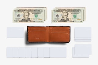 What looks like a normal wallet from the outside, and inside, actually boasts a secondary pouch concealed beneath a lip of leather. It's a great way to hide large bills while keeping change at the ready.— MENS JOURNAL