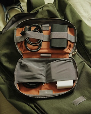 Pockets and elastic loops give a charger, mouse, slim power bank, cables, dongles and more their own special spot.